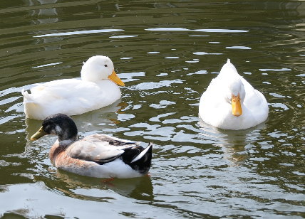 仲良く泳ぐアフ、ラック、アリコの3羽♪いつもこうだといいのですが・・・。 |
