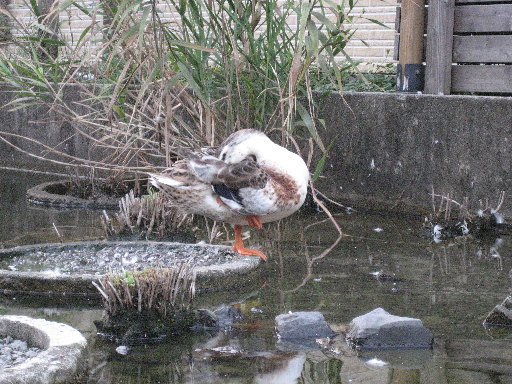 亀たちが日向ぼっこしている横をアヒルたちが泳いでいます♪ 以前から不思議なのですが、亀は人が近付くと一目散に逃げます。アヒルは無害とわかっているのでしょうか。それとも人知れず会話しているのでしょうか・・・。 |