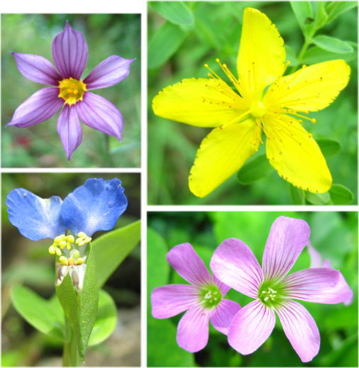 撮りためていた小さな花達(1〜2cm)です。キュートですね〜☆右上はセントジョンズワートの花です。ハーブティーにして飲むと気持ちが元気になります♪うつ病にも効くとか。 |