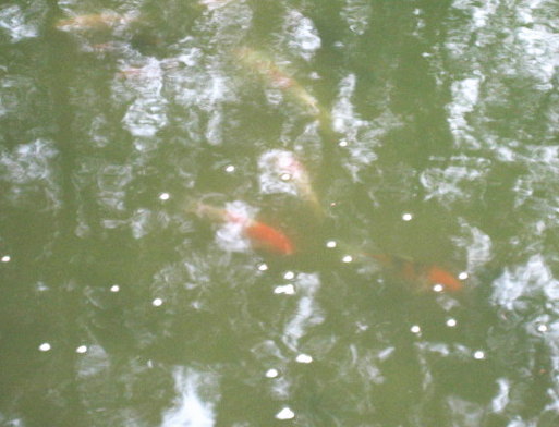 冬季は姿を見せず水上デッキの下でジッとしている鯉たち。今年は比較的暖かいせいかよく泳いでいる姿を見かけます。試しに餌を与えて見ると、完全に無視されました・・・。 |