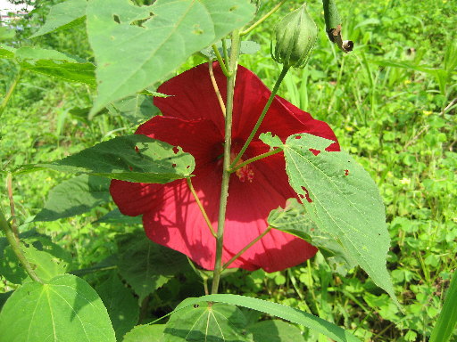 アメリカフヨウが今年初となる大きな花を咲かせました!葉の裏に隠れて少し恥ずかしそうです☆これからどんどん咲きますよ〜♪ |