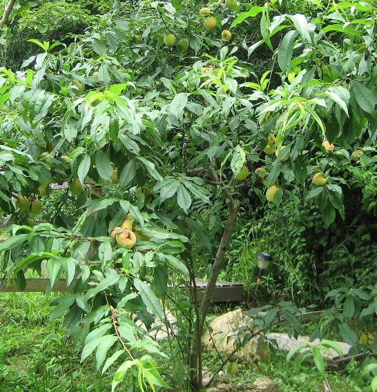 今年も沢山の桃がなりました。ほんとは大きく育てようと思うと1本の木に10個ほど残し、後は取ってしまわないといけないのですが、今年も忘れていました(^^;)でも、いっぱい桃がなったということが嬉しいです。今朝、カラスがおいしそうに食べていました☆ |
