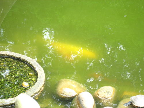 草魚池にはとっても大きな鯉がいます。ビックリするほどデカくて、まんまると太っています。しかも金色です。エサを食べる時以外は底の方にいるので見かけた方はご利益があるかも知れません。 |