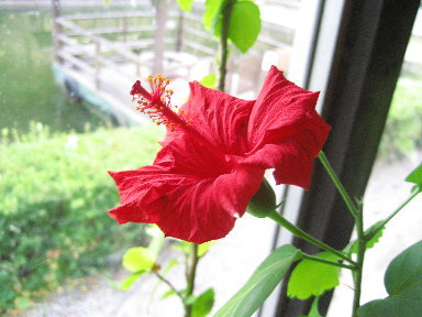 いよいよ12月ですね☆レストハウスにて時期を間違えて咲いたハイビスカスが寒そうです。 |