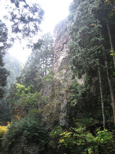 遊歩道沿いにある天狗岩。大きくそびえ立つ姿に自然の力を感じます。