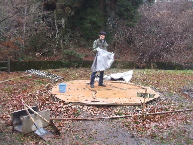 先日友人の○ッチがキャンプ場に遊びに来ました。まだ仕事中だったので、「手伝って見る?」って冗談半分(半分本気)で聞いたところ、心よくイエスの返事が☆いい友達です(^-^)おかげで作業は急パッチで進みました。 |