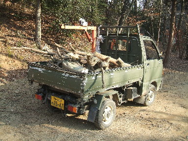 コナラに絡み付いていたフジ蔓です。太い枝は細かくカットして10月から始まる恒例サービス、石焼芋の燃料として使おうと思っています(^-^) |