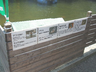 草魚池にあるアヒル小屋の柵にアヒルや合鴨、亀たちの紹介パウチを貼り付けました。アヒルのアフとラック、合鴨のアリコの名前に皆さんややウケで、ちょっと嬉しいです(^-^) |
