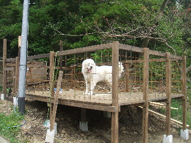 とりあえず、囲いが完成したのでクマを中に入れて見ました。デッキの感触が抜群のようで大ハシャギで喜んでいました(^-^)♪ |