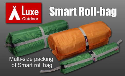 1人でテントをたたんだ時や急いで寝袋をまるめた時など、テントや寝袋がなかなかスタッフバッグに入らなくてイライラした経験はないでしょうか。そこで便利なのが「スマートロールバッグ」。入れるもののサイズに合わせてバッグをまるめるので楽に収納が可能です。
