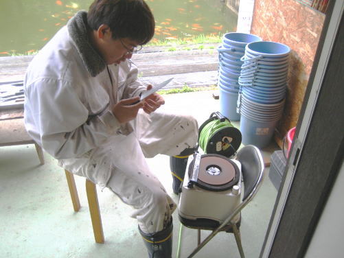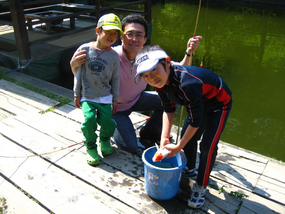 「でっかい鯉はなかなか釣れないですよ〜」と話していた矢先・・・ お子さんが釣り上げちゃいました〜(>_<)!!見事な大物です☆やりましたネ(^-^)この後、鯉は池に放しましたが、いい思い出として残していただければ幸いです。 |