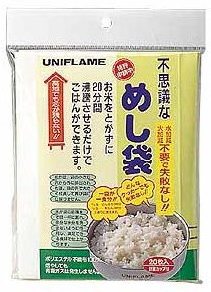 お米をとがずに20分間沸騰させるだけでご飯ができます。高地でも芯が残りません。クッカーを選ばず焦げ等で汚す心配もありません。冷めても5〜10分間ほど、再び湯だきをすれば大丈夫。ぬかの混じったお湯でも繰り返し使用できます。例えばレトルトカレーと同時に同じ鍋でご飯が作れます。経済的で荷物の軽減にもつながります。使用済みの袋は生ゴミの水切りネットに最適です。燃やしても有毒ガスは発生しません。