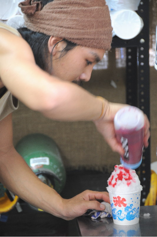 カキ氷を作っているボランティアスタッフのダイちゃんです。ん〜、様になってますね☆おいしそうです(>_<)しかし、今年の夏は暑いですね〜。暑い時は犬キャンのカキ氷で暑さを吹き飛ばしましょう! |