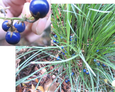 恥ずかしながらリュウノヒゲに実がなることを今日まで知りませんでした。気付いてビックリ!!一瞬目を疑いました。とてもキレイな青色です。 |