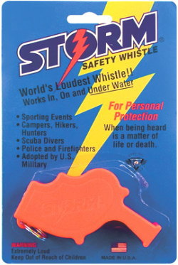 誰にでも簡単に操作できるストームホイッスルはお子様の防犯グッズとしてもお薦めです。防犯ブザーのように故障や誤作動、電池切れ等の問題が起こることはありません。 また通常のホイッスルだと水に濡らした後、鳴らすと音が出にくくなりますがストームホイッスルはどんな状況下においても正常に働きます。 発見しやすく携帯を強調するオレンジカラーは防災用、防犯用として特にお薦めです。 |