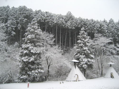 初雪です☆白銀の犬キャンもなかなかいいものです。雪中キャンプを目的にお客様も数組訪れてくれました(^-^) 十分な防寒対策で寒ささえクリアすれば冬キャンプの方が日常から離れてゆっくりと楽しめるかも知れません。