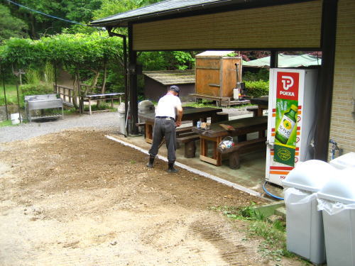 フリーサイトの1部、屋根付きスペース。 せっかく屋根があるのに豪雨の際に道路を流れて来た雨が床を濡らしてしまうという問題点を抱えておりました。そこでスタッフ安藤さんにお願いして、道路と床の間に雨道となるU字溝を設置することにしました。これにより雨天でもより快適なBBQが可能になったと思います(^-^) |