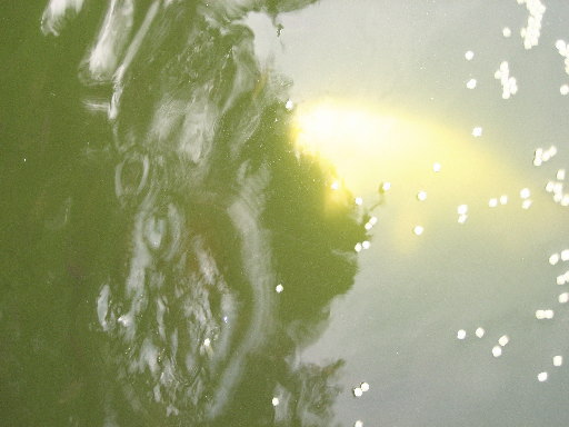 忍びよる白い影・・・。草魚池にいつの間にか棲みついていた白い鯉です。ソウギョよりも大きく成長してしまいました。今のところこの白い鯉がソウギョ池のヌシです。 |