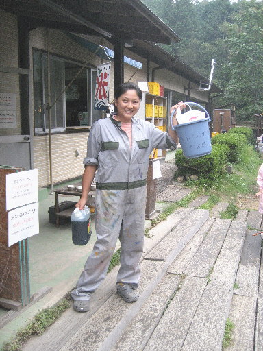 炊事場、トイレなどの汚れを確認するためナオちゃんには一日2回見回りをお願いしています。フリーサイト、ティピーサイト、オートサイトと、すべてのサイトを点検、清掃します。ナオちゃんの笑顔で汚れもピカピカです(^-^)