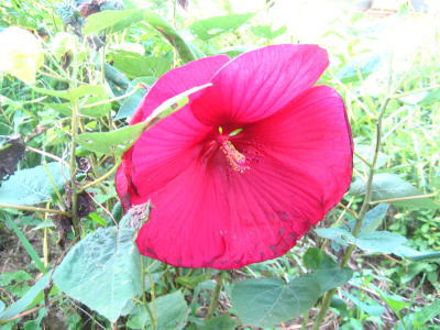 オートサイト南側斜面にて。「アメリカフヨウ」です。9月以降10月頃まで見れますが夏場と違って、たんまに咲きます。見た方はラッキーかも☆直径20〜30ほどの大きな花です。パワー、もらえますよ(^-^) |