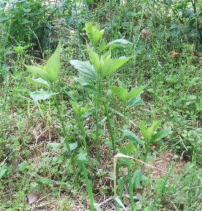 去年植えたアメリカフヨウですが、無事冬を超え、今年も元気な葉を出しました(^-^)アメリカフヨウとはハイビスカスの仲間で、特徴はその花の大きさです。大きなもので直径約30cm。きれいというより奇妙(?)な感じがするほどデカいです!