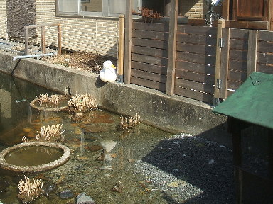 来た当初は控えめだった合鴨のアリコですが、最近良くアフをいじめているのを見かけます。この頃、1匹ぼっち、縁石の上で休んでいることがあるアフ・・・。チョット心配です・・・。 |