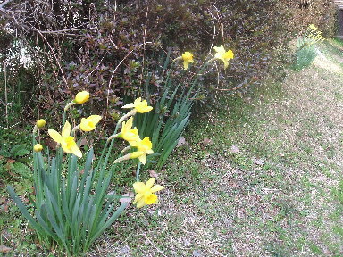 スイセンがやっと花を咲かせました。水上デッキ横斜面のスイセンです。続いて受付裏、和室横廊下沿いの斜面とより日向の多い順に咲いてくれるのでこれからしばらく楽しめます(^-^)種類は西洋スイセン(ラッパスイセン)です。 |