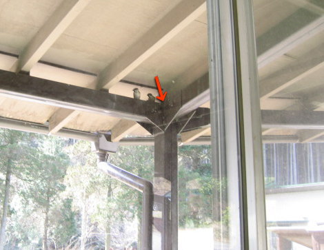 今年もスズメ夫婦が受付前の矢印部分に巣を作り始めました♪こうして、毎年来てくれると嬉しいものです(^-^)ヒナの巣立ちが楽しみです☆ |