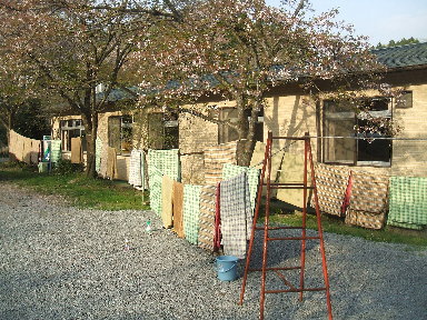 せせらぎサイト炊事場の藤が見事な花を咲かせています。こちらは毎年とても調子がいいのですが、ティピーサイトの藤は全くです。手入れの仕方を調べていずれ沢山の花を咲かせて見せようと思います(^-^) |