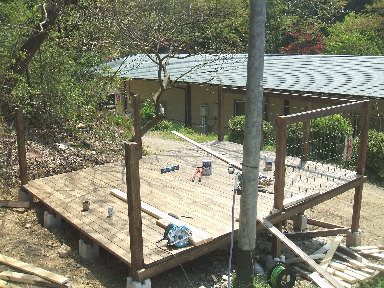クマの新居が完成間近です。スタッフT氏と「バーベキューデッキに出来るくらいの完成度ですねぇ」と話していました。クマにはちょっともったいない新居です(^-^) |