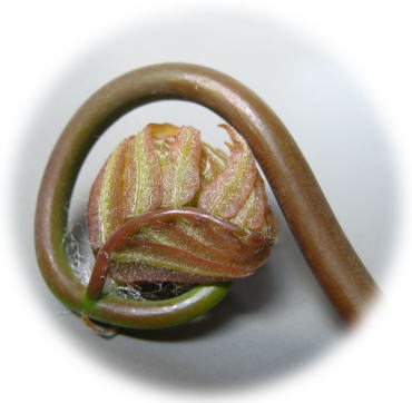 クマとの散歩途中にたまたまゼンマイを発見!!これは奇跡です!!この辺りではシダ類の山菜はワラビしか収獲できません。実際にゼンマイを見たのは初めてです。八曽山に唯一存在するゼンマイを発見したのかも知れません。新聞社の方お待ちしております。 |