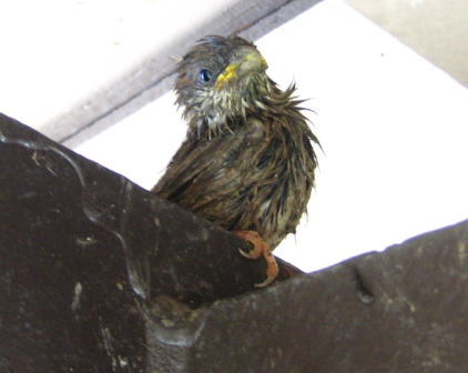 餌を待つスズメの雛です。こんなにも至近距離で撮影させてくれました。もうすぐ巣立ちでしょうか(^-^)