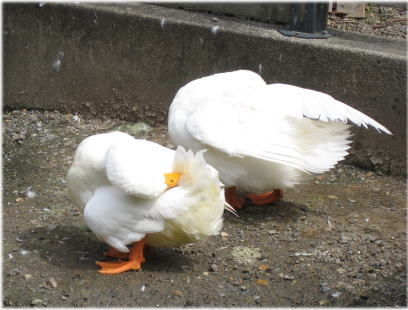 羽のお手入れをしているのですが、かきむしっているようにも見えます。とってもかゆそうです。頭の角度がえらいことになってます。 |
