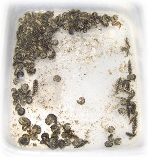 さて、この中に蛍の幼虫は何匹いるでしょう? 正解は200匹です!ちょっと気持ち悪いですね〜。