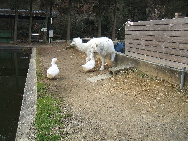 久しぶりにクマを池に近付けアフと面会させました。すぐに池から飛び出して来たアフ。この2匹以前からとても仲が良いのです。池があひる達のおうちになる前はお互いの小屋が近く、よくジャレあっていました。奇妙な友情は未だ続いているようです(^-^)少しホッとしました。