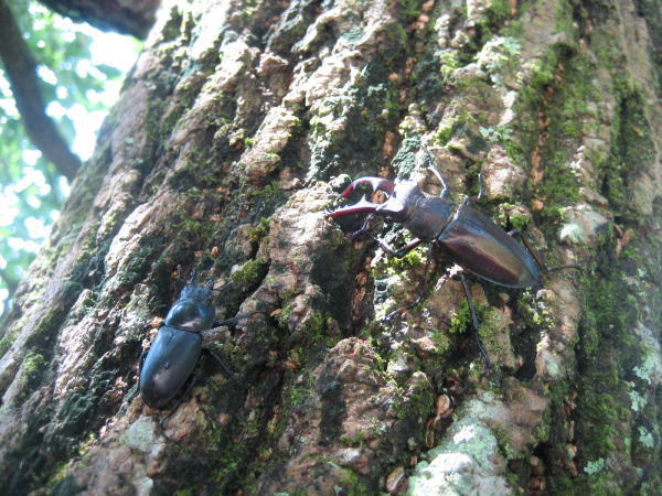 やりました!ついに、クワガタゲットです!しかも、オスメス♪ それぞれ別の場所で発見したのですが、メスは何と、家の中で捕まえました。なかなか、ないですよね。家の中でクワガタを見つけることって・・・。 |