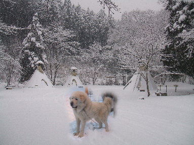 いつもは白いクマですが、雪景色の中におくと茶色に見えるのは気のせいでしょうか・・・。 |