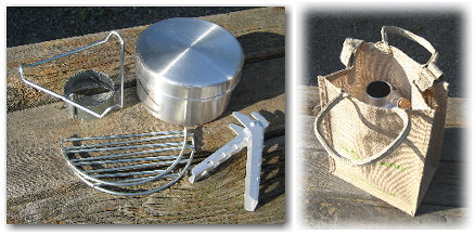 グリル:ストームケトルの下部(カマド)の上に置くだけ。ストームケトルがクックストーブに速変わり! クッカー:クリップハンドル付のアルミ製軽量クッカー。フタの部分はフライパンにもなります。ハンドルはクッカーの中に、クッカーはストームケトルの中にピッタリ収まるサイズなのでかさばりません。