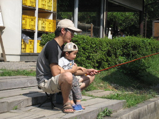 後輩のN村夫妻が子どもを連れて遊びに来てくれました(^-^)釣り師N村、子どもの目も真剣です。何かと器用なN村ですが、本日は1匹もゲットならず・・・悔しい結果に終わりました・・・ |
