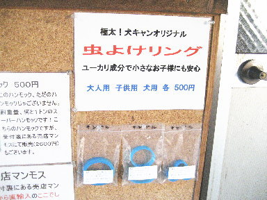 今年もご好評いただいております。オリジナル虫よけリング。キャンプ場では500円で販売しています。9月に入っても残念ながら蚊は絶えません。虫よけ対策はぬかりなく! |