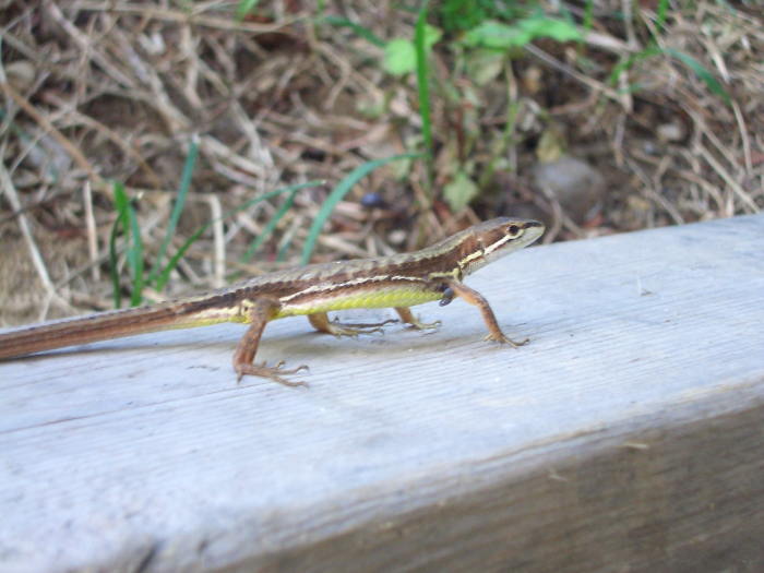 こんばんは! 今日も天気がよく絶好のキャンプ日和でした。 ←カナヘビです。 なかなかかわいいですね〜。大きくなる約25cmほどまでに成長するそうです。 |