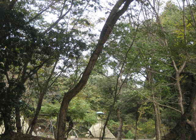 毎年地面が落ち葉で引きつめられるティピーサイトはまだこんな感じです、徐々に色好付はじめています。