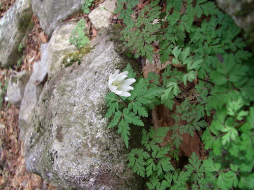 こんばんは!今日は山野草のご紹介 昨年5月に高賀山(岐阜県)へ行った時に撮ったのもです。 おそらくアズマイチゲです。1茎に1輪しかつきません。 ほんとに1輪しか咲いてませんでした。 |