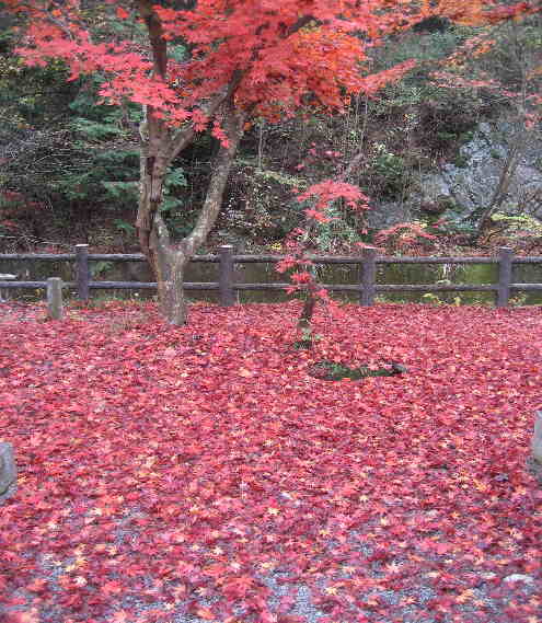 モミジの葉が落ちて赤いジュータンになっています。 |