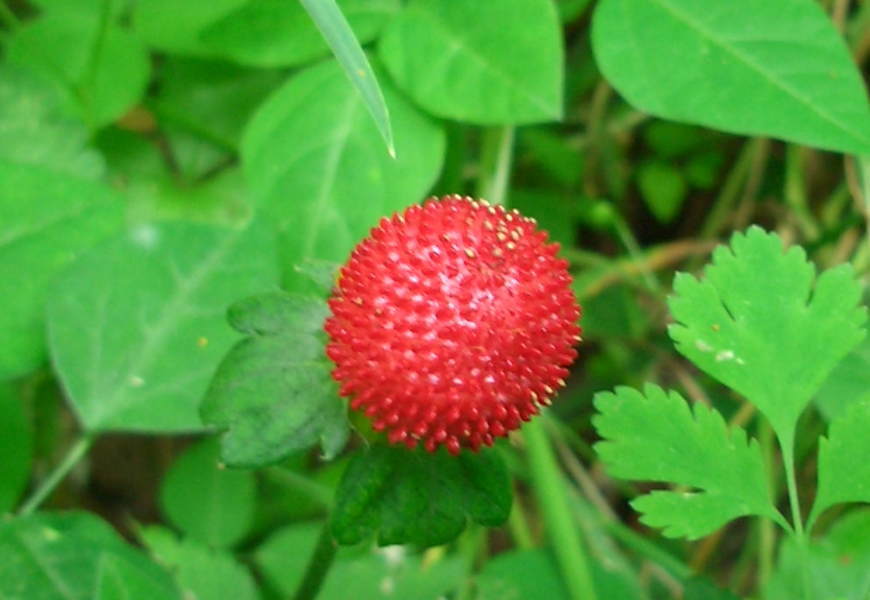 今日は雨が降ったり止んだりの繰り返しでした。 5月25日に紹介した実の正体は依然不明です。 半分に切ってみました・・・ほんとにイチゴみたいですね〜。