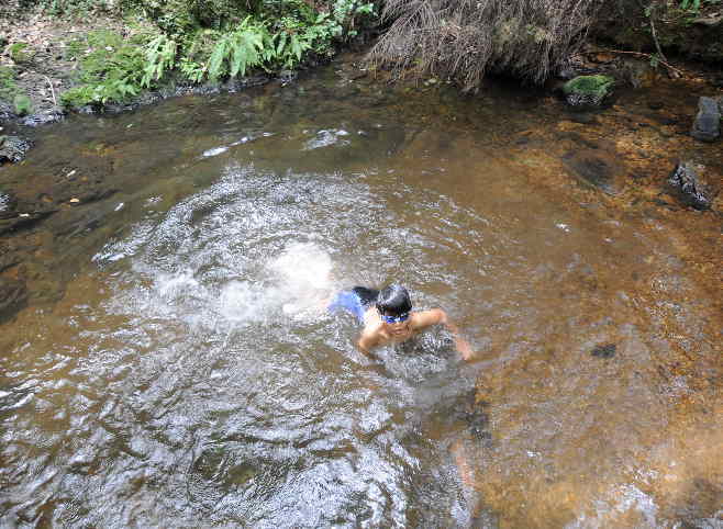 こんばんは。 キャンプ場の川を下流に向かって約10分ちょっとした水遊びスポットがあります。 |