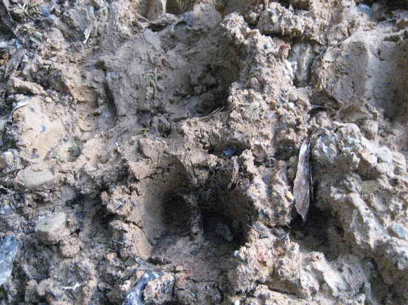 普段人が立ち入らない森へ行ってみるとイノシシの足跡を発見!