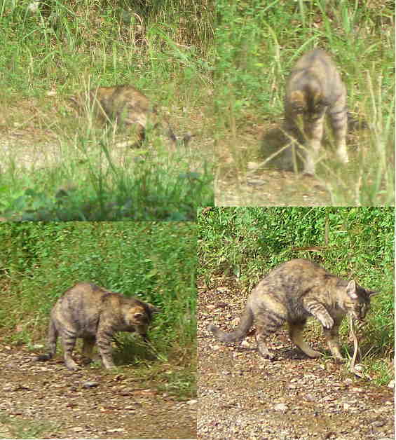 野良ねこの観察@ こんなところにウ○コしている!・・・・と思ったら蛇を捕獲! |