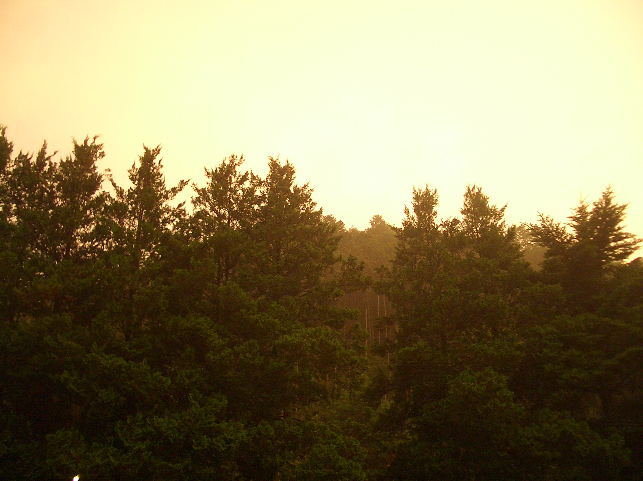 こんばんは、夕方になって雷&豪雨になりました。 すう2時間ほどで雨が上がる空全体が黄色に染まっていました。