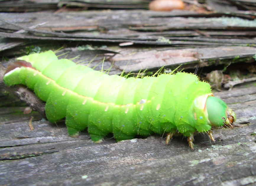 こんばんは! 掃除をしていたら・・・ 青虫を発見しました。どうやら「ヤママユガ」の幼虫のようです。 成虫になると沢山見つけることができます。